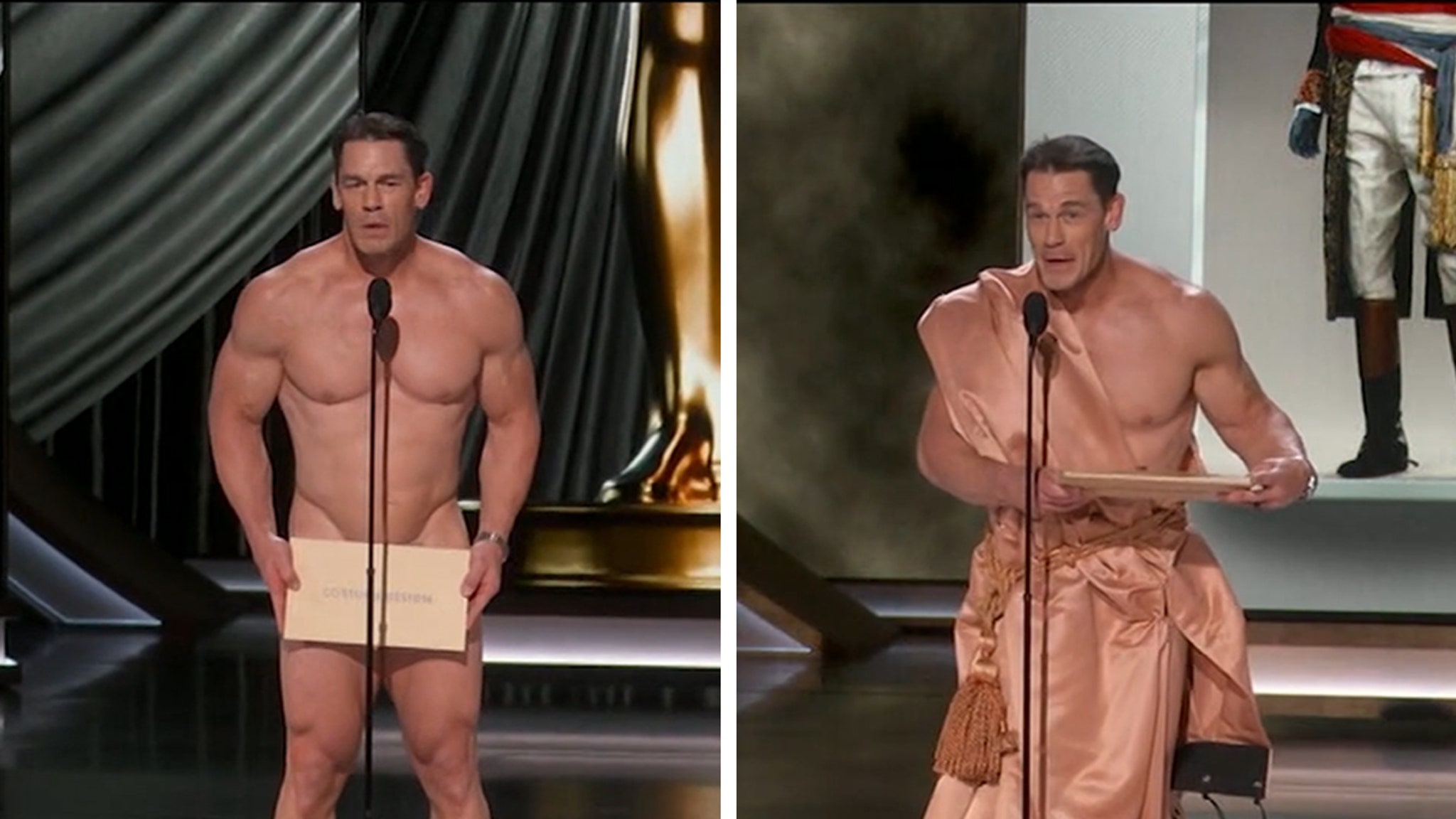 John Cena went from ass-naked to wanting like a superb old style Greek thinker in file time on the Oscars — and the wardrobe change was really caught on digicam.